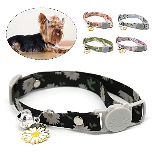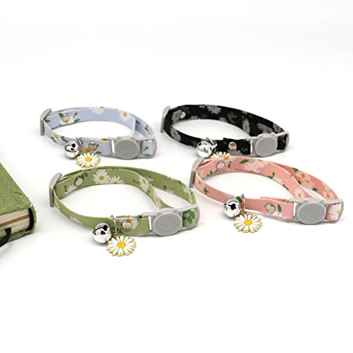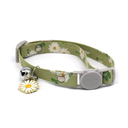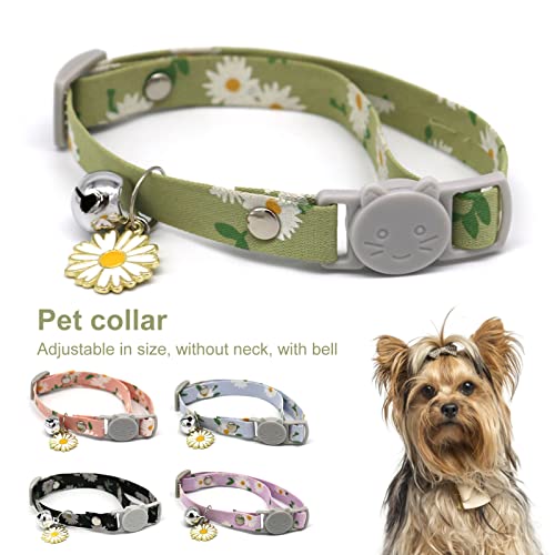 Home Pet Supplies Collars Cat Collar Floral Pattern Anti-Choke Polyester Breakaway Pet Cats Dogs Collars with Bell Pet Supplies – Green
