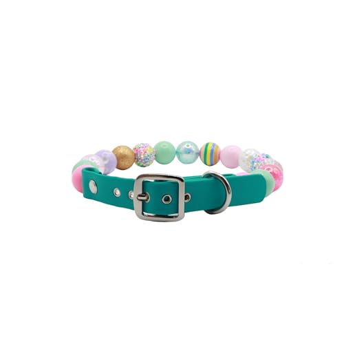 Adjustable Pet Collar For Small Medium And Large Dogs Beaded Silicone Dog Necklace Handmade Girl Bling Fancy Female Cats Pretty Pearls Perla Cute Rinbow Heavy Duty(Colorful) (10-12 Inches, Easter) $34.99