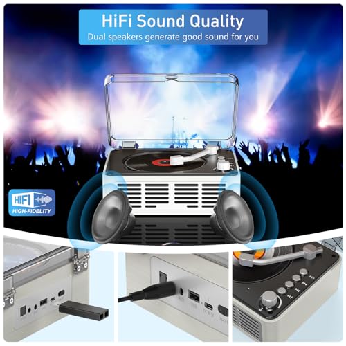 cd Player Portable with Bluetooth,Double HiFi Sound Speakers,Sleep Mode,Desktop CD Music Players,Support AUX/USB/Headphone Jack/Music Fiber Optics/FM Radio Boombox for Home,Office (White)