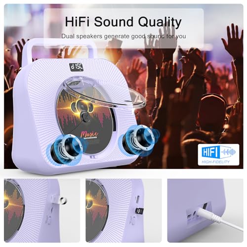 CD Player with Bluetooth,Double HiFi Sound Speakers,Sleep Mode,CD Player Portable,Support AUX/USB/Headphone Jack/Music Fiber Optics/FM Radio Boombox for Home,Office(Purple)
