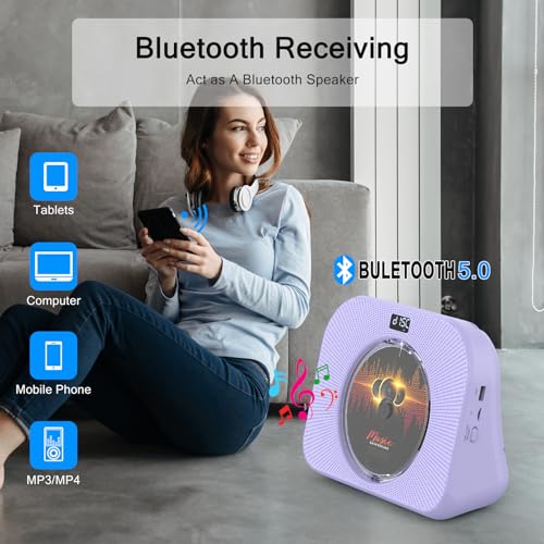 🌷【Bluetooth Compatibility】The CD player also features Bluetooth connectivity, allowing you to stream music wirelessly from your smartphone, tablet or other compatible devices. This makes it easy to enjoy your favorite tunes without having to worry about cables and wires.