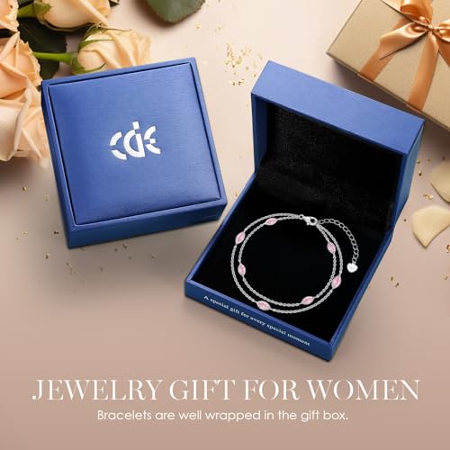 CDE Birthstone Bracelet for Women 925 Sterling Silver Charm Link Evil Eye Gothic Black Angle Eye Bracelet with Cubic Zirconia Anniversary Birthday Mother’s Day Jewelry Gifts for Women Wife Girlfriend Her