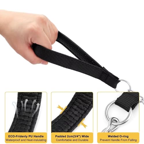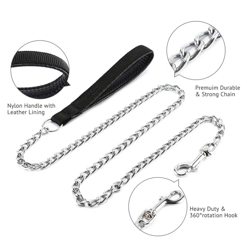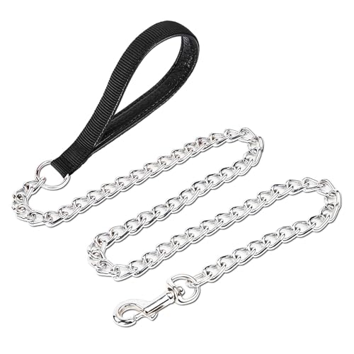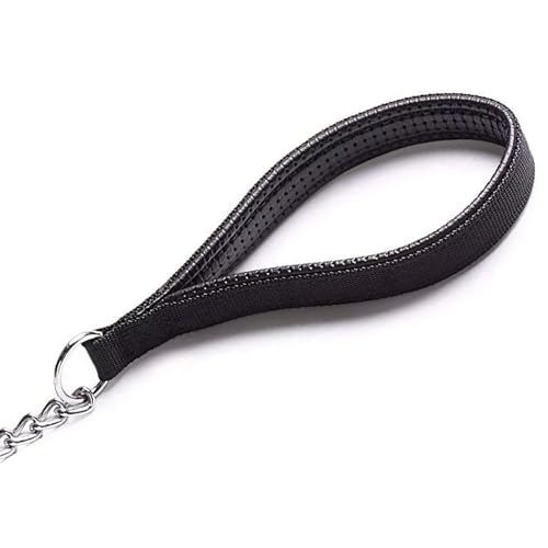 Chain Leash Metal Dog Leash Chrome Plated with Soft Padded Handle for Small Dogs.(S, Black Handle)