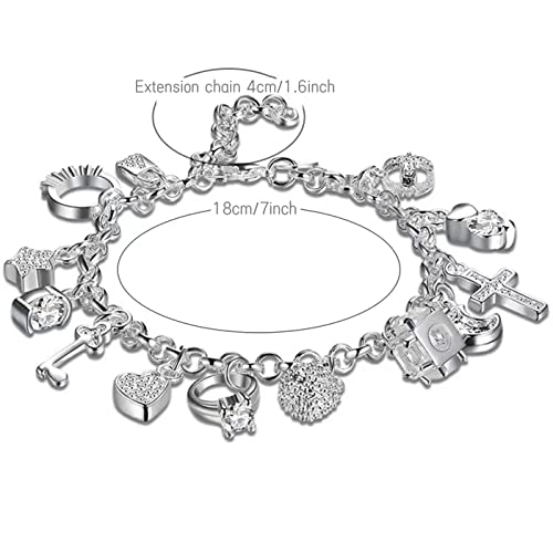 • ❤[Material]:charm bracelets for women sterling silver, 925 sterling silver, stylish and simple, with 13 different small pendants, more stylish personality, Charm Bracelets for Women,Alloy Metal, 925 Silver Plated, Very Shiny and Popular, Match with Suitable Apparel for Different Occasion.