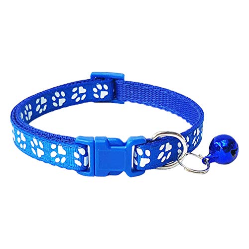 Home Pet Supplies Collars CHBORCHICEN 2-Pack Footprint & Reflective Cat Collar with Bell Basic Dog Cat Collar Buckle Adjustable Polyester Cat Dog Collar or Seatbelts (X-Small, Blue)