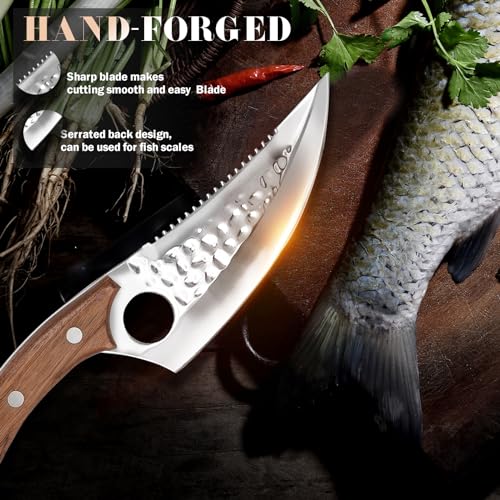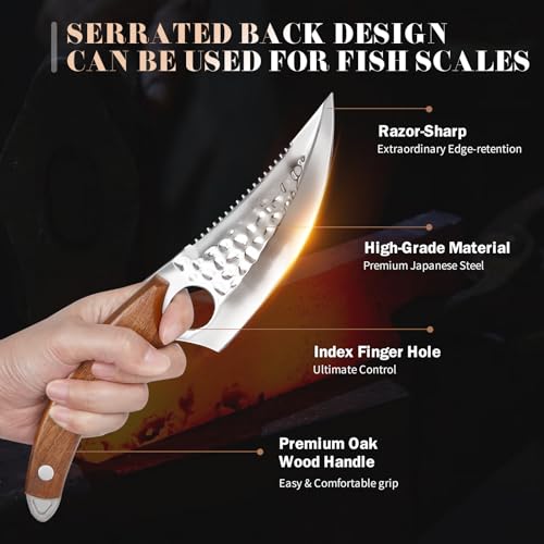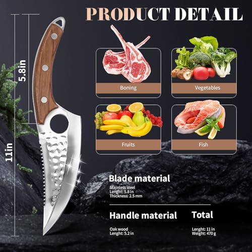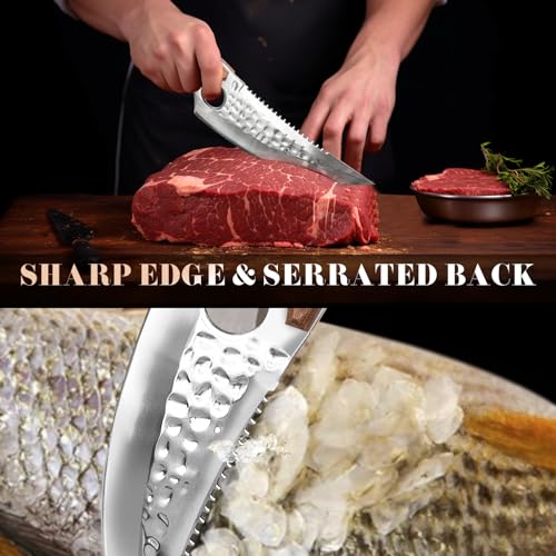 Home Small Kitchen Appliances Knives Chef Knife, Premium Kitchen Knife with Leather Sheath, Japanese Knife for Meat Cutting, Boning Knifes for Kitchen or Camping, Viking Knife Chef’s Knives Designed for Balance & Control