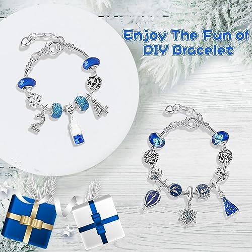 Christmas Advent Calendar 2023 Girls, 24 Days Christmas Countdown Calendar, Xmas Charm Bracelets for Girls, Stocking Stuffer Gifts Idea, DIY Jewelry Bracelet Making Kit for Kids-Blue