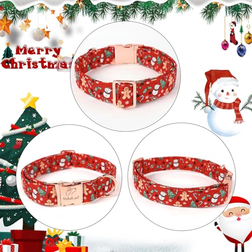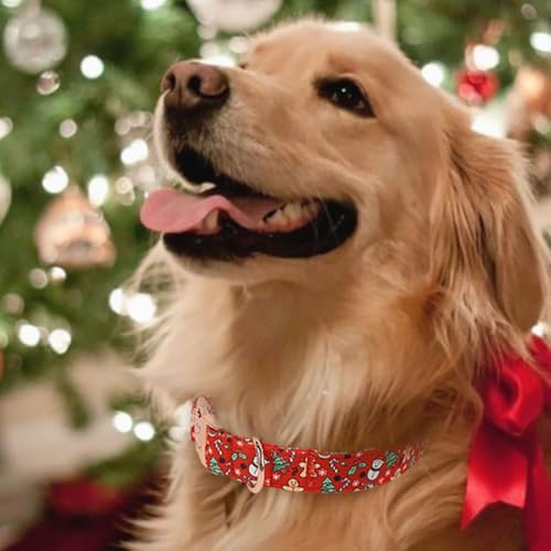 Christmas Dog Collar for Medium Dogs – Design Cute Winter Festival Collars Adjustable Red Christmas Pet Metal Buckle Collar for Puppy Girl Boy Female Dogs M