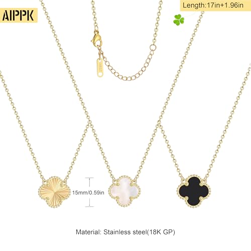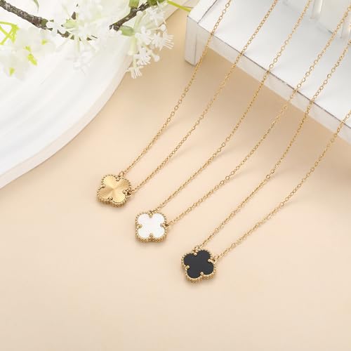Clover Pendant Necklace Set for Women 18K Gold Plated Van Cleef Four Leaf Clover Necklace Lucky Simple Dainty Necklace Jewelry Gifts for Women White+Black+Gold