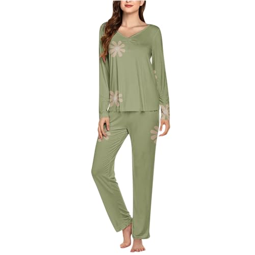 Comfy Pajamas Set for Women Pleated V Neck Breathable Soft Sleepwear Set Flower Printing Fashion Lounge Nightwear