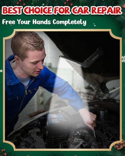 Coquimbo Tool Gifts for Men Dad Him, Rechargeable LED Work Light Grill Light with Magnetic Base and Hook 5 Modes 360° Rotate Mechanic Light Stocking Stuffers Mens Gifts (2 Pack Black)