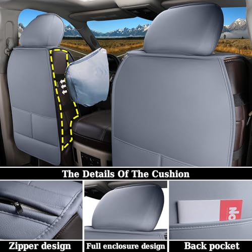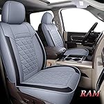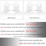 Coverado Car Seat Covers Full Set, Waterproof Dodge RAM Seat Cover Compatible with 2002-2024 RAM 1500 2500 3500 Truck Pickup Crew Double Mega Quad Cab with Flat Bench, Gray