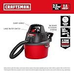 The CRAFTSMAN 2.5 Gallon Wet/Dry Vac, with a 2.5 Peak HP motor, is great at home, in the garage, or jobsite detail cleaning. With its small size and carrying handle, this shop vacuum goes wherever you need to clean. It’s equipped with the crevice tool to clean hard-to-reach places and the utility nozzle good for a quick garage cleanup. This 2.5-gallon wet dry vac can also be used as a blower, making it a great two-in-one tool. If you’re looking for a portable solution for small messes, requiring little storage space, this vacuum is the answer. *Gallons indicated reflect drum volume, not necessarily collection capacity, actual capacity dependent upon type of debris collected, condition of filter and other factors. Peak horsepower represents a level at or below the maximum horsepower output of an electric motor tested in a laboratory using a dynamometer.