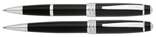 This special limited-time Bailey ballpoint and rollerball set in black lacquer with chrome appointments is ideal for gifting occasions. It was designed with an eye for detail, from its cap-over-barrel design, to its multi-grooved chrome center ring with patterned engravings, to its sleek, modern clip. Both writing instruments are well-balanced and feature specially formulated Cross ink that flows flawlessly for a superior writing experience. They are presented in a gift box and is covered by our lifetime Mechanical .