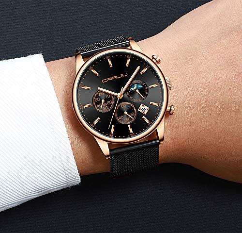 CRRJU Men’s Fashion Casual Watches Auto Date Chronograph Watch Men Nice Work Watches Waterproof 30M Full Steel Quartz with Mesh Strap