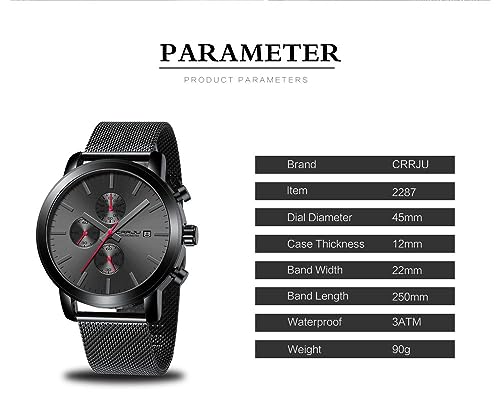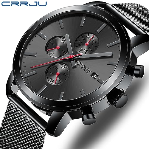 CRRJU Watches for Men Luxury Business Stainless Steel Waterproof Calendar Chronograph Analog Quartz Wristwatches