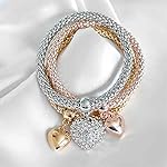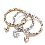 Crystal Charms Multilayer Bracelets – 3PCS Gold/Silver/Rose Gold Corn Chain Bracelet for Women, Tree of Life Heart Shaped Stretch Bracelet
