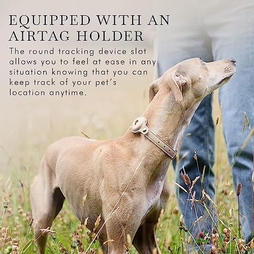 Cupertino Dog Collars, Harnesses & Leashes Made from Vegan Leather with Dog Tracker Device Holder Adjustable Dog Collar (Medium, Beige)