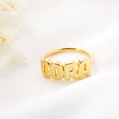 Custom Initial Rings for Women Men Personalized 3D Bubble Letter Ring for Women Custom Chunky Name Ring Block Bubble Initial Letter Ring Bubble Name Ring Balloon Letter Ring Bubble Letters Ring