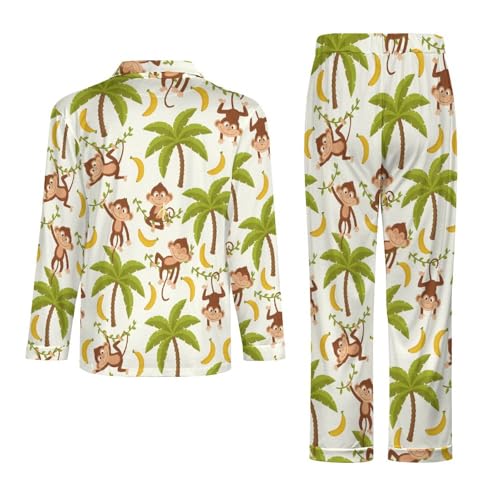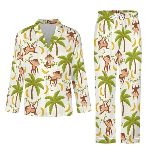 Cute Monkey Pajama Sets Mans Long sleeve Pajamas Set Sleepwear Suit Cuban Collar Nightshirt Suits Home Top Bottoms