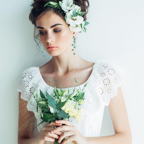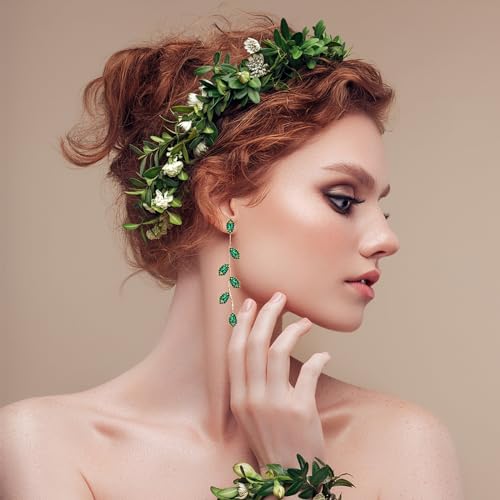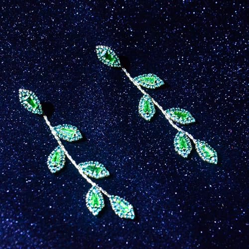 Dangling Earrings for Women Bridal Earrings for Wedding Rhinestone Wedding Prom Anniversary Delicate Leaf silver drop Earrings Long Earrings- Elegant Earrings