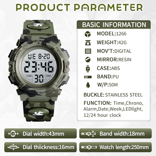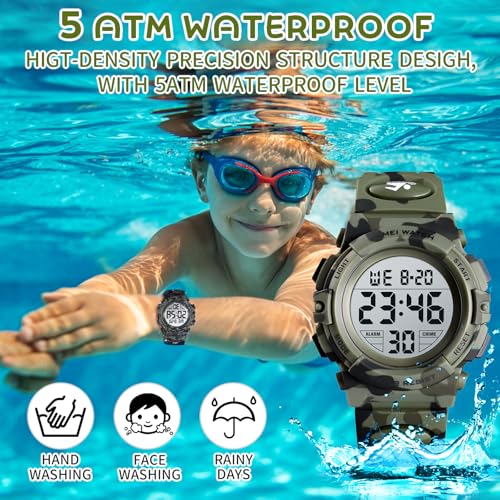 Dayllon Kids Digital Watch Outdoor Sports 50M Waterproof Electronic Watches Alarm Clock 12/24 H Stopwatch Calendar Boy Girl Wristwatch