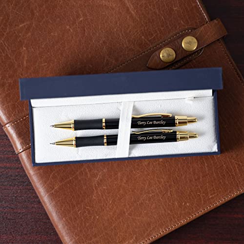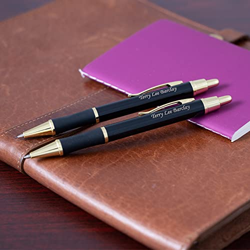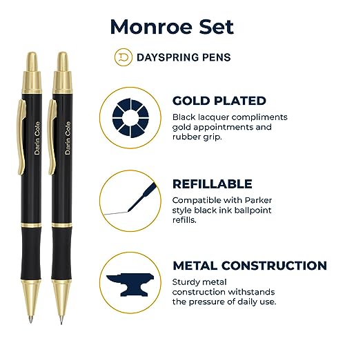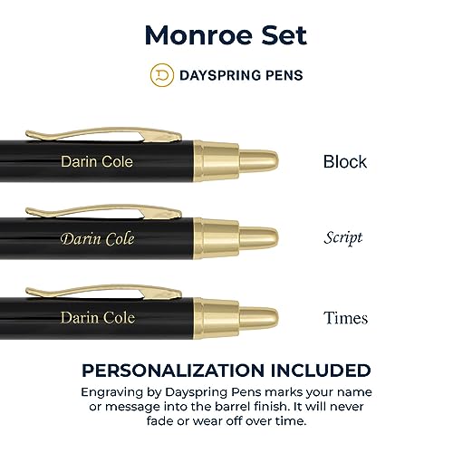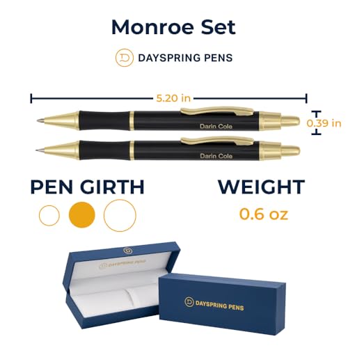 Dayspring Pens Personalized Pen and Pencil Set Monroe Pen and Pencil Gift Set – Black Lacquer Finish. Personalized Engraving of Your Name or Message. Gift Box Included.