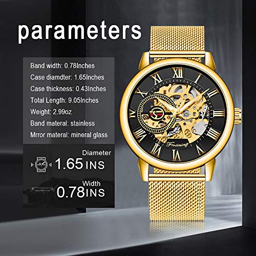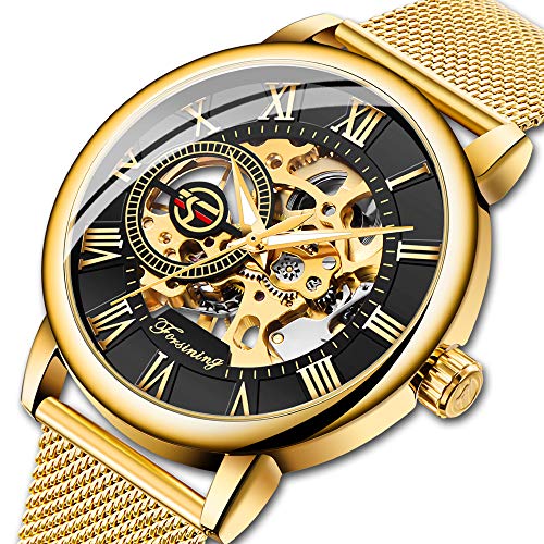 Home Wristwatches Dentily Men’s Skeleton Watch Classic Roman Numeral Steampunk Mechanical Watch Hand-Wind Mens Watches (Blue)