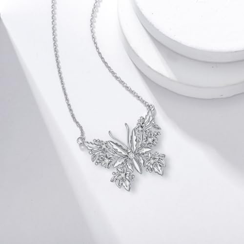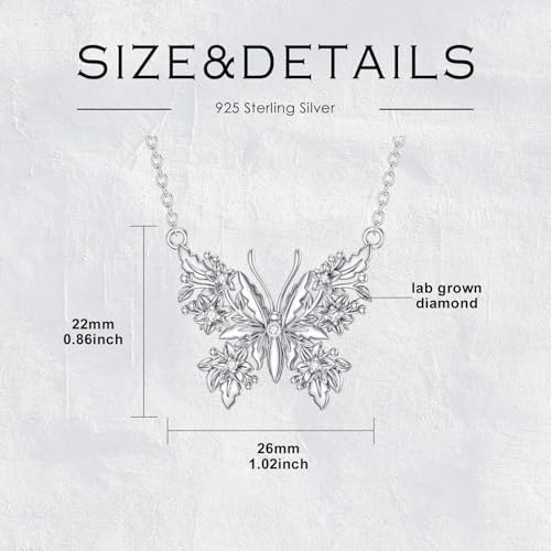 Diamond Butterfly Necklace for Women 925 Sterling Silver Butterfly Pendant with Lab Grown Diamond Jewelry Gifts for Loved Ones
