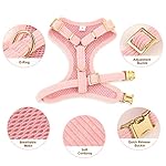 - Soft Velvet & Breathable Mesh – This small soft dog harness with breathable air mesh will make your pets feel comfortable and dry during daily use. Will not hurt pet’s skin. The golden metal accessories and bowtie design also make your pet look more conspicuous and fashionable, very suitable for party or other important occasions.