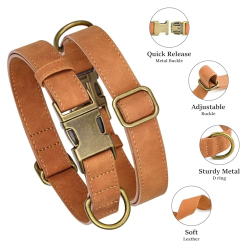 Didog Soft Leather Dog Collar, Durable Heavy Duty Dog Collars with Quick Release Metal Buckle, Adjustable Purple Dog Collar Leather for Small Dogs, Light Brown, S14.99