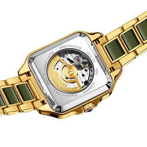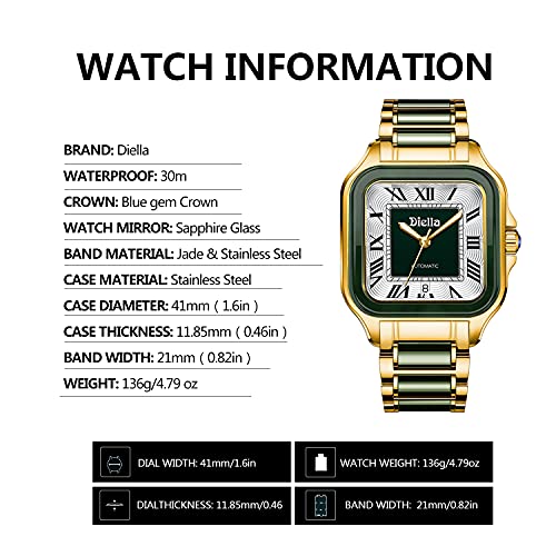 Diella Rectangle Automatic Wrist Watches for Men and Women with Jade