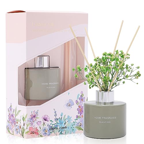 L'odeur Vill Reed Diffuser Set, 4.06 oz(120ml) Vanilla Scented Diffuser with 4 Oil Diffuser Sticks, Home Fragrance Essential Oil Reed Diffuser for Home Large Rooms Bathroom Shelf Decor $13.99