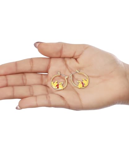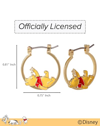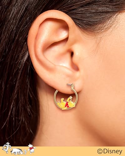 Disney Piglet and Winnie the Pooh Hoop Earrings for Women Official License, 18k Gold Flash-Plated Winnie the Pooh Earrings