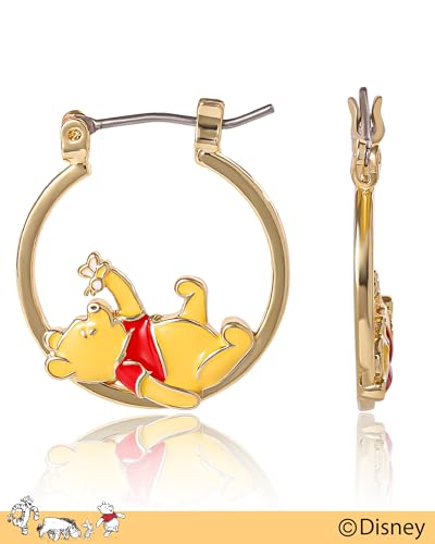 Home Jewelry Earrings Disney Piglet and Winnie the Pooh Hoop Earrings for Women Official License, 18k Gold Flash-Plated Winnie the Pooh Earrings