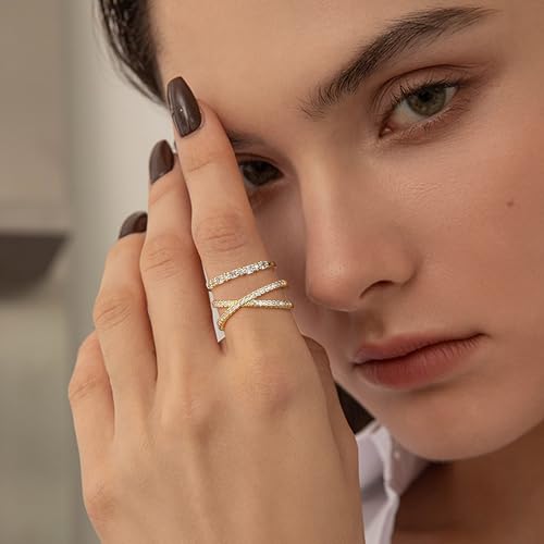 Dochais Stackable Cubic Zirconia Gold Rings for Women Non Tarnish Finger Ring Set 14k Gold Plated Dainty CZ Wedding Engagement Rings Size 5-9