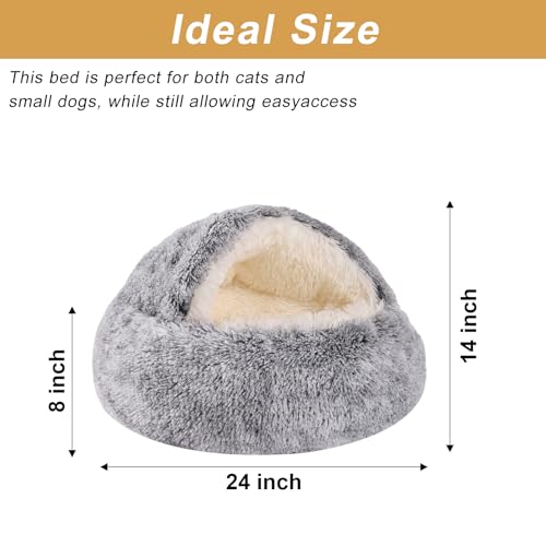 Dog Beds for Small Dogs, Cat Bed Cave, Washable Cute Cat Bed, Cozy Nook Pet Bed for Dogs or Cats, Anti-Slip Puppy Bed Fits up to 22 lbs Pets(Grey, 24″ x 24″)
