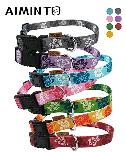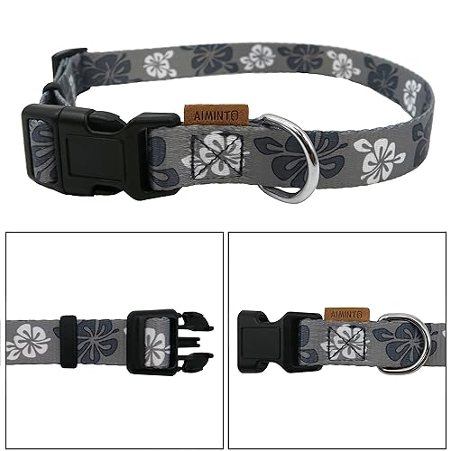 Dog Collar, Cute Floral Pattern, Soft and Adjustable Collar with Quick Release Buckle (S (Neck 11-18″, Width 5/8″), Hawaiian Grey)