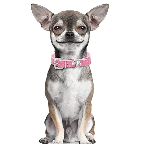 Dog Collar with Name Plate Leather Diamonds Dog Collar Pet Dog Chain Cat Collar Adjustable Dog Collar Diamond Flash Dog Collar Pet Collar Light Ca Breakaway Collar for Cats Reflective Pink Small $3.69