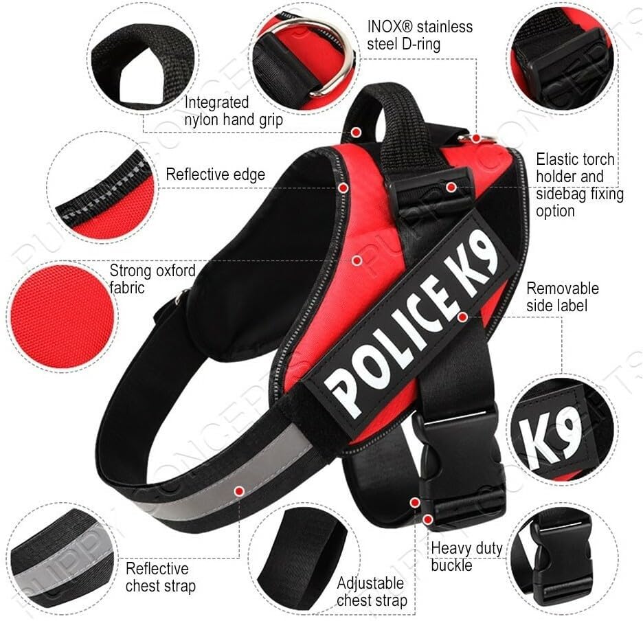 Finally, One Harness for Every Occasion Thoughtfully designed with convenience and quality in mind, dog vest is crafted for safety, durability and comfortable functionality to make life easier for you and your dog. Be at ease in public and limit distractions from dog-loving strangers. With your ChullBull Dog Vest, everyone will instantly recognize your trainee’s working status, allowing you and your dog the space and respect you both deserve. This Harness comes with removable patches to communicate different occasions, comfortable mesh lining and double-stitched nylon for durability, and an attached handle and “D” ring to pair with any leash. Visibility and Control For added control and safety, our harness features reflective straps and patches for night time visibility, and a top-mounted handle for total control over your dog when faced with an emergency situation. Comfort and Convenience Our vests feature a quick-release belly buckle for a low-stress, perfect fit that you can size just right for your dog. We’ve also paired heavy-duty, double-stitched nylon with a comfortable mesh lining to ensure that each vest is as comfortable as it is durable and long-lasting. This k9 harness also enhances the safety of both you and your furry friend during nighttime walks, making your dog easily noticeable to passing vehicles. Have better control during dog working, walking and training