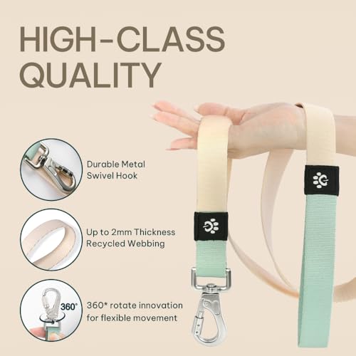Dog Leash, Eco-Friendly Recycled Polyester Webbing | Soft Hypoallergenic, Durable Metal Swivel Hook, Collar Attachable, 5.2 ft Length| Size S, Peach Creme