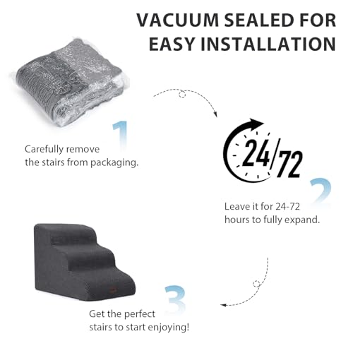 SPECIAL NOTE: Our dog stairs are vacuum compressed. Open all packages before use, allowing sponge to contact air. It may take 72 hours to rebound. Wait patiently until product returns to normal shape.