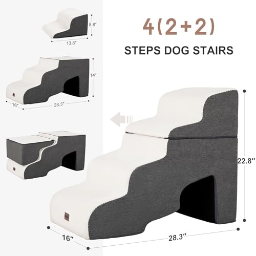 Dog Stairs for High Beds with Tunnel, 4-Step Dog Steps for Small Dogs and Cats, Foldable Pet Stairs for High Bed Climbing, Non-Slip Balanced Pet Step Indoor, Beige
