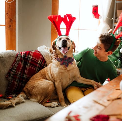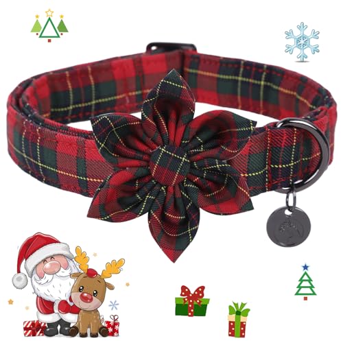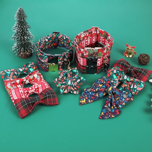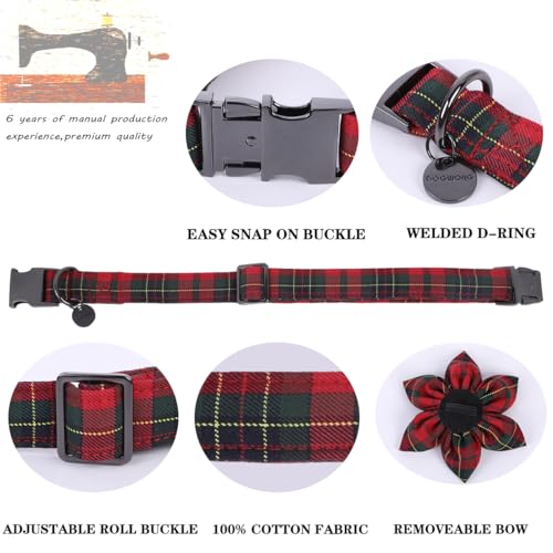 DOGWONG Christmas Red Plaid Dog Collar with Bowtie, Cute Cotton Dog Collar Red Christmas Dog Bowtie Durable Soft Pet Dog Collar for Small Medium Large Dog