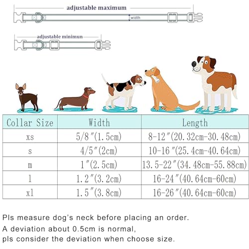 [SIZE] Measure your dog’s neck size and check the sizing table before choosing the size; this ensures you’ll receive the best-fitted size for your dog.