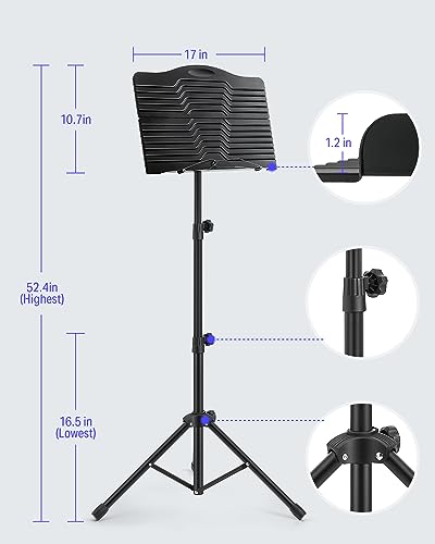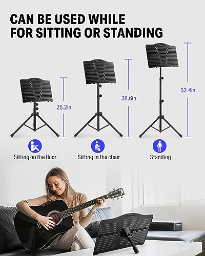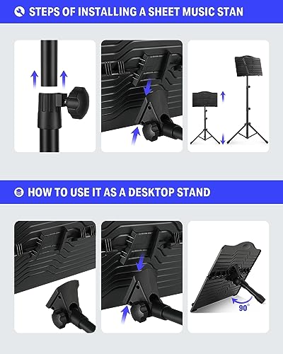 - Portable and Foldable designed: Black foldable bookplate and steel music stand is very easy to carry and stock, and come with a carrying bag for long-term or temporary use.