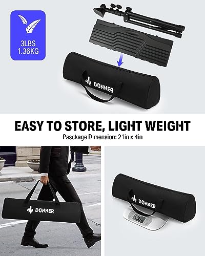 - Extra Accessories: Come with music stand light, USB cable(power for music stand light), black carrying bag and music sheet clip holder. 【Recently, Donner upgrade its logo. Due to the difference of production batches, the Donner logo on the product you received may be different. However, the quality, material and craftsmanship of the products are the same and guaranteed as always. We apologize for the confusion caused.】