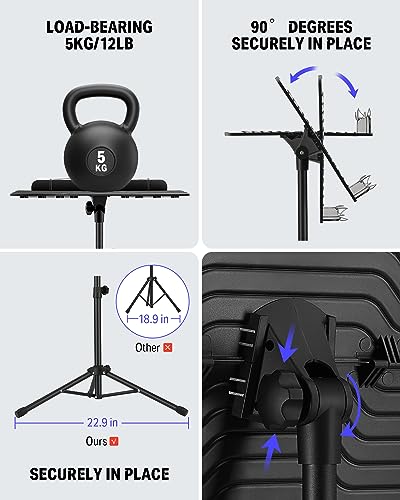 - Sturdy and Durable: Bookplate is made of tough ABS and can withstand 12 pounds of heavy objects such as books/computer/projector. The shaft and legs are made of high-strength tubular steel, which ensures the stability and durability of the music rest.
