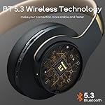 [Bluetooth 5.3 & Built-in ANC Microphone]: With two 40mm large bezel driver units and Bluetooth 5.3 technology, these Headphones Bluetooth offer more stable transmission speed, lower latency and better audio output. The Headphones can give you wonderful music enjoyment and the built-in ENC technology microphone of the over ear Bluetooth Headphones wireless automatically reduces ambient sound enables hands-free clear phone communication.