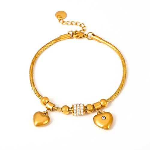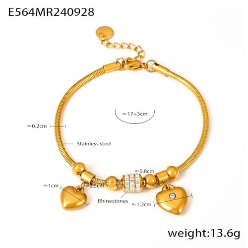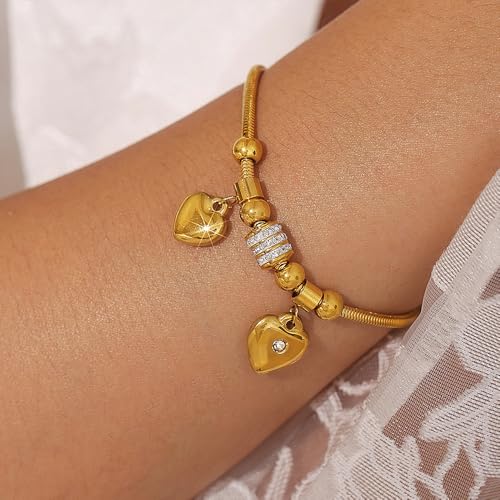 Double heart Charms bracelet for Women 18K Gold Plated Stainless Steel Adjustable Link Bracelets Jewelry Gifts